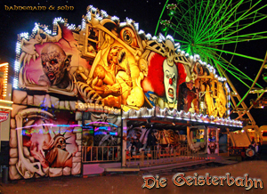 Seit 1996 betreiben wir die familienfreundliche Geisterbahn. Die Geisterbahn ist eine moderne und zugleich traditionsreiche Geisterbahn. Eine effektvolle energiesparende LED-Beleuchtung und tolle Soundkulisse erwartet sie. immer familienfreundlich