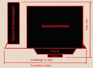 Technische Daten und Wagenpark Geisterbahn-Hahnemann & Sohn Frontlänge 21.50 m mitgeführter Wagenpark